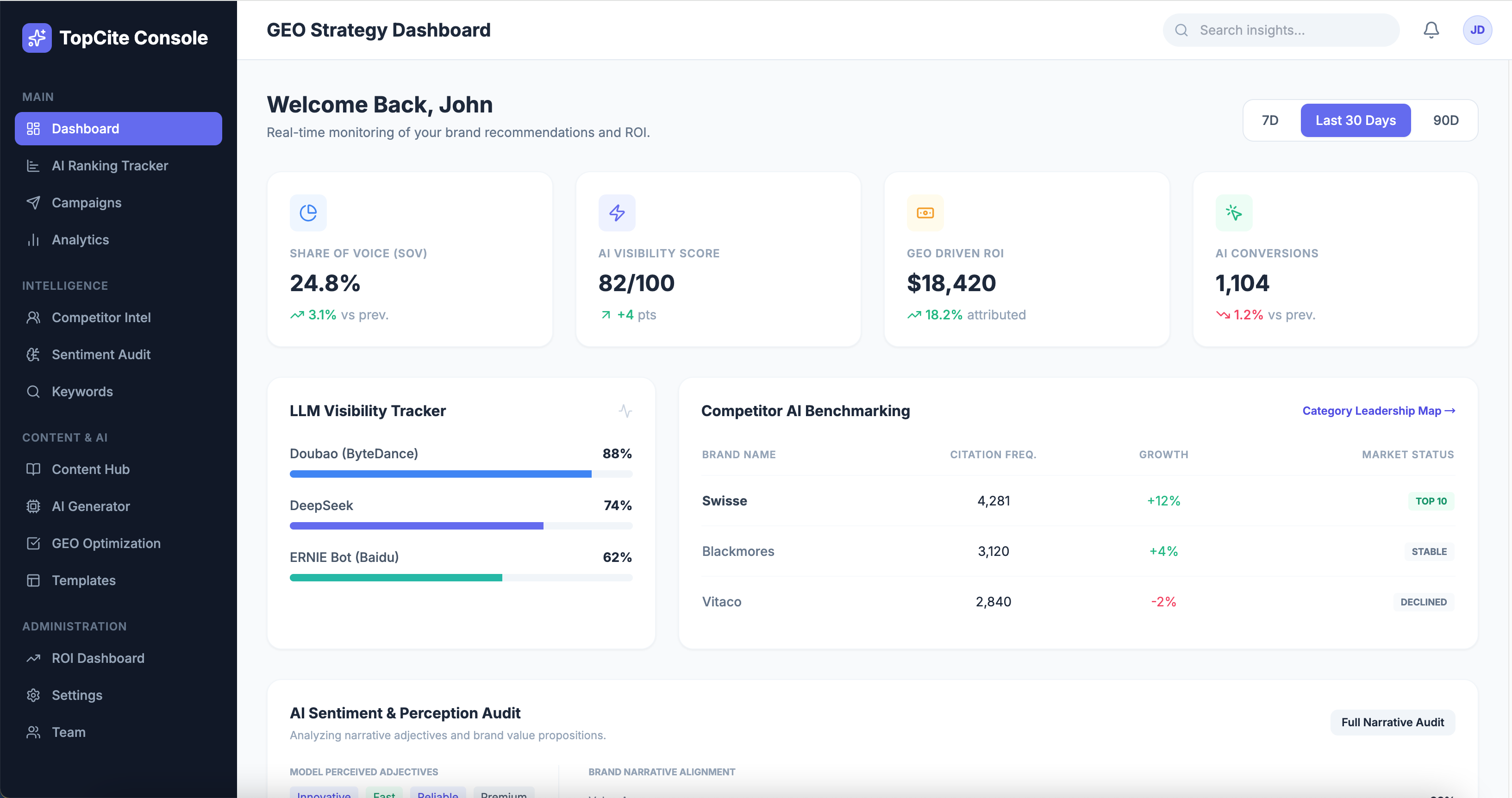 "TopCite helped us navigate the Chinese AI. Within weeks, our brand was being cited as a top-tier recommendation, giving us a strong position in the market."